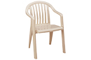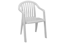 stacking armchairs make for a welcoming spot to relax and enjoy. Low maintenance and cool