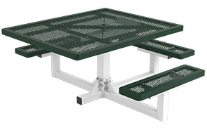 The tabletop measures 46" square, with an ADA-compliant 3-seat option available at